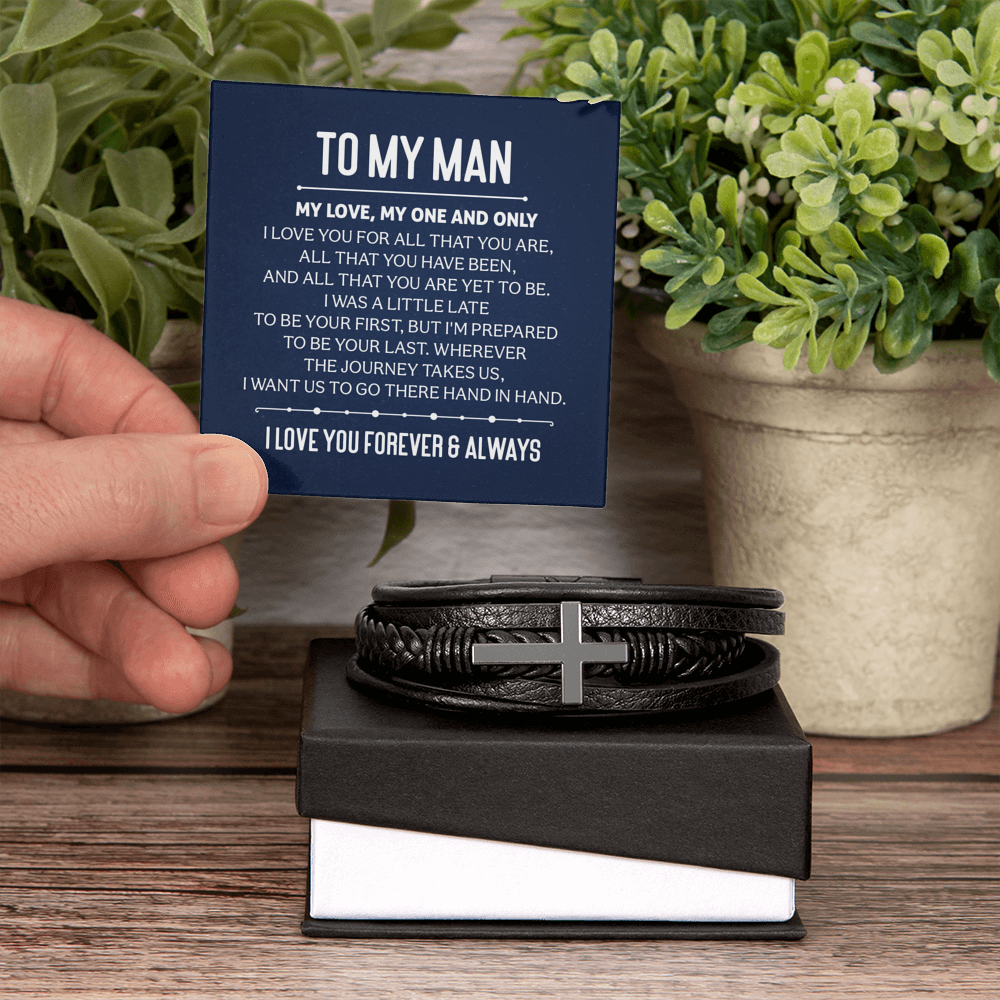 This Men's Cross Leather Bracelet is the perfect keepsake for someone special in your life. Handcrafted with care, this piece features braided vegan leather and a sleek stainless steel cross. This would make an ideal gift for your beloved partner, family members, or dear friends on special occasions like anniversaries, birthdays, or any event where you want to express your love and appreciation in an unforgettable way.